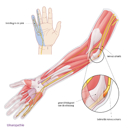 Cubitale tunnel syndroom en nervus ulnaris compressie zijn beiden aandoeningen waarbij de zenuw nervus ulnaris is aangedaan. De zenuw loopt aan de binnenzijde van de elleboog door een groeve heen. Deze kan in dit gebied druk of irritatie krijgen die kan leiden tot problemen in de onderarm en pols.